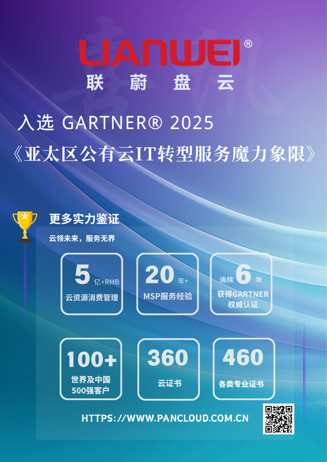 16th November 2025,Shanghai LIANWEI PanCloud Technology (“Lianwei PanCloud ”), a leading IT services provider specializing in cloud managed services, digital soutions, and cloud-native technologies, has been recognized in the Gartner “Asia/Pacific Context: Magic Quadrant for Public Cloud IT Transformation Services” report, published 16 October 2025.